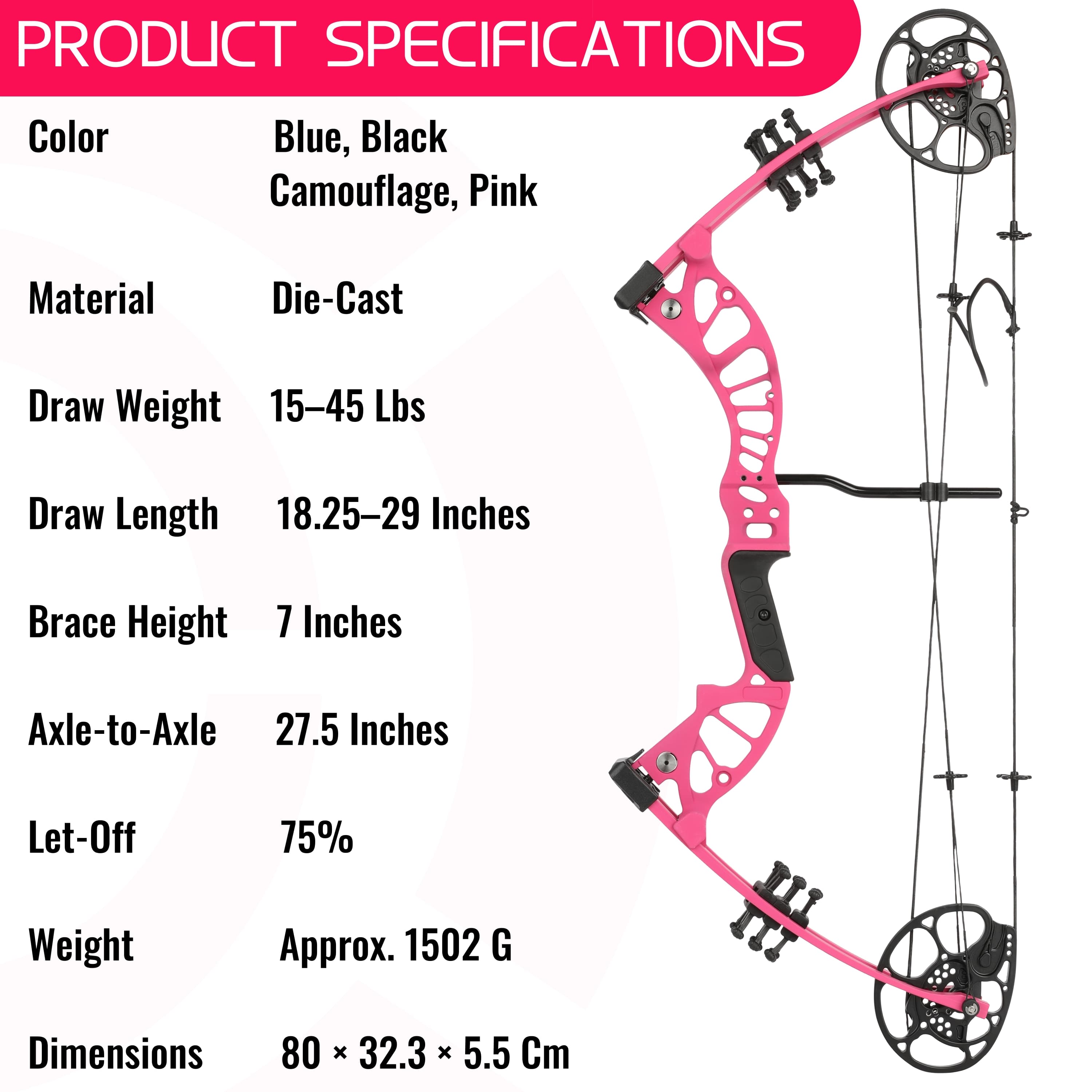 • Let-off: 80% – Holds steady at full draw for longer, helping with shot accuracy.