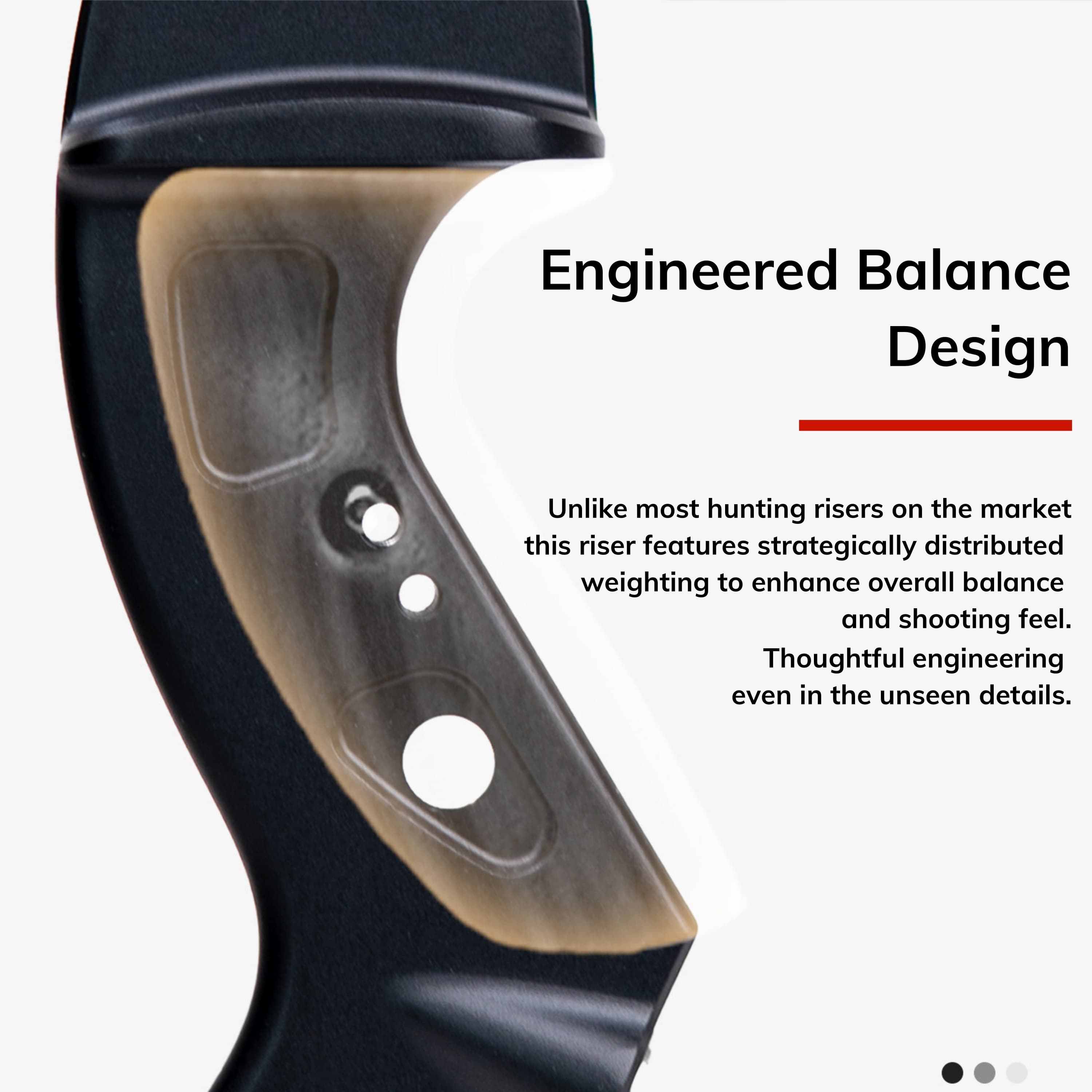 • The bow handle is made of 6061T6 aluminum, CNC machined, and anodized, resulting in exceptional precision and consistency.