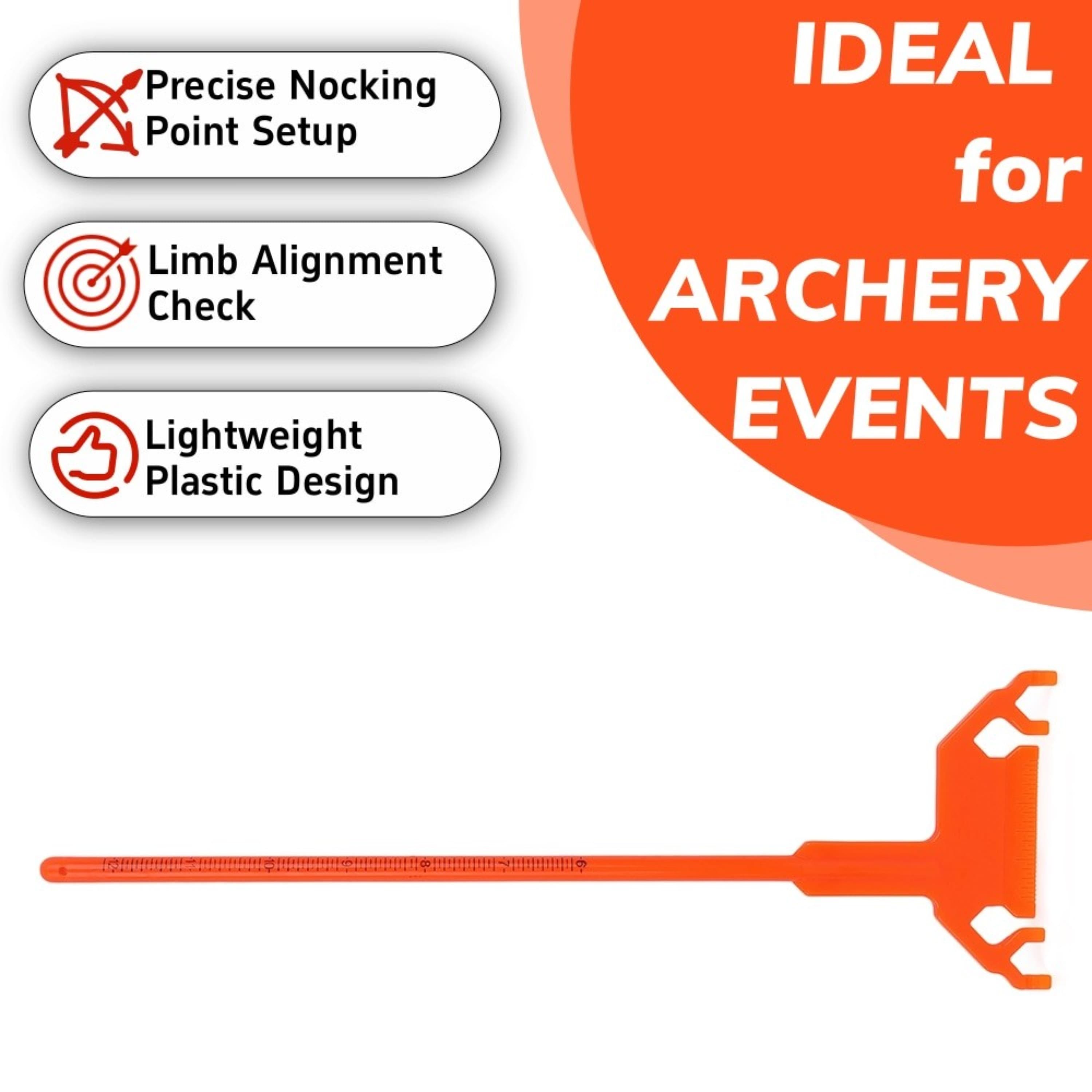 • Essential Multi-Purpose Tuning Tool: An indispensable tool for archers to accurately set up and tune their bows. It measures critical settings like brace height and nocking point position, and checks limb alignment for optimal performance.