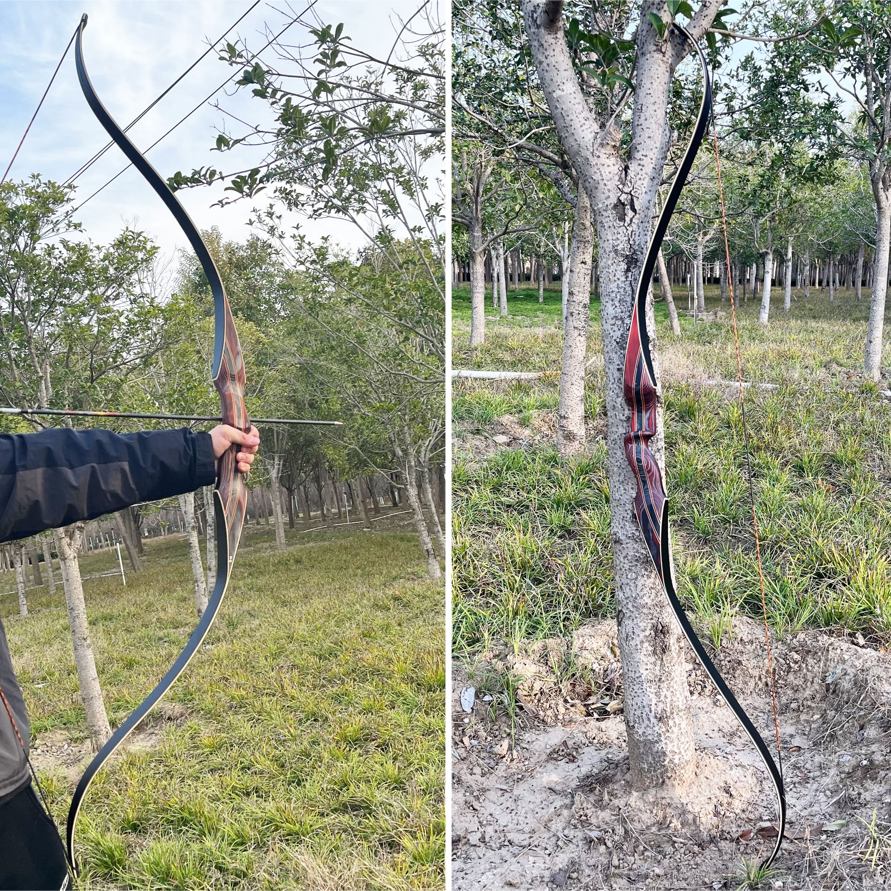 64" Traditional Recurve Bow Set 30-60lbs Archery Longbow