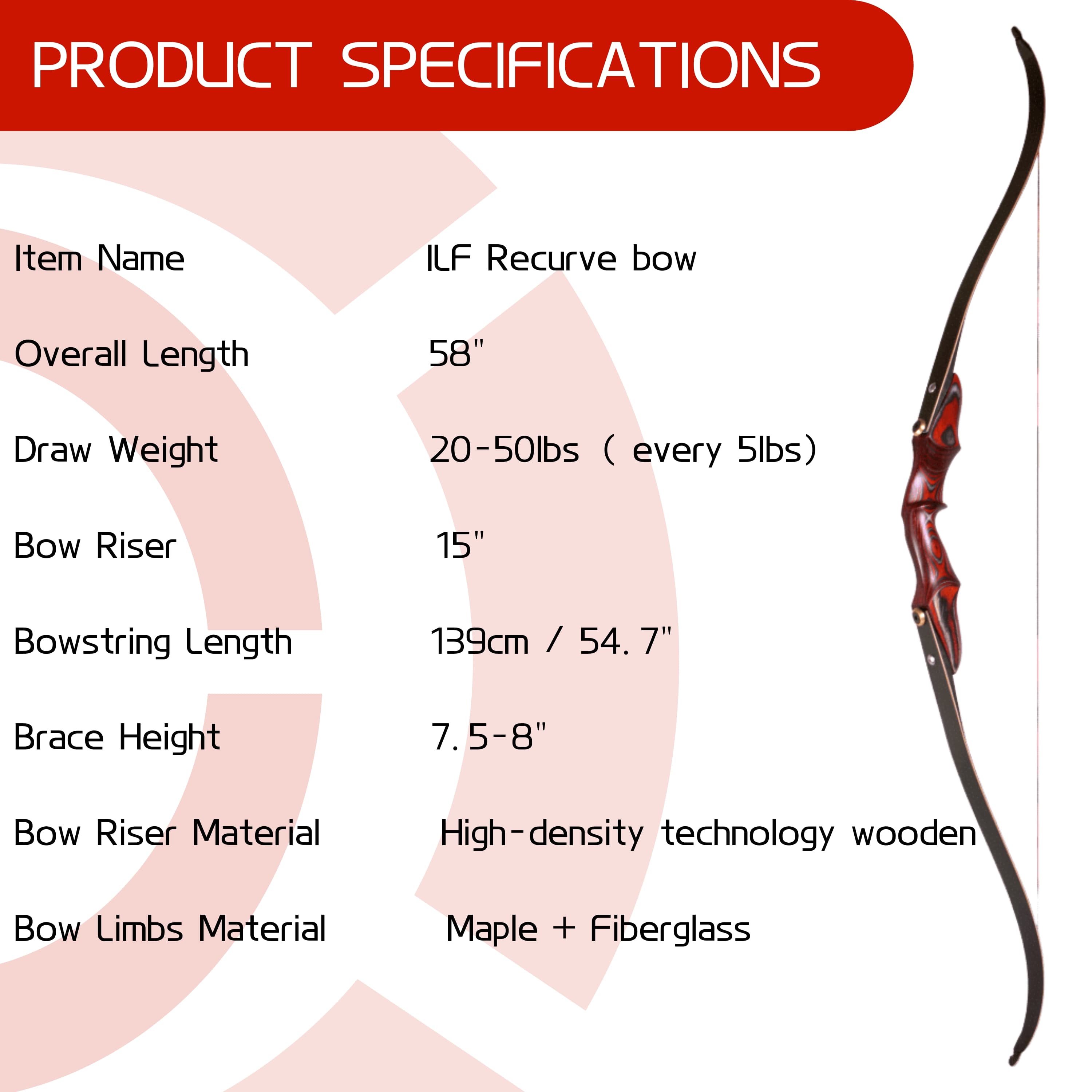 58" Traditional ILF Recurve Bow 20–50 lbs Wooden Takedown
