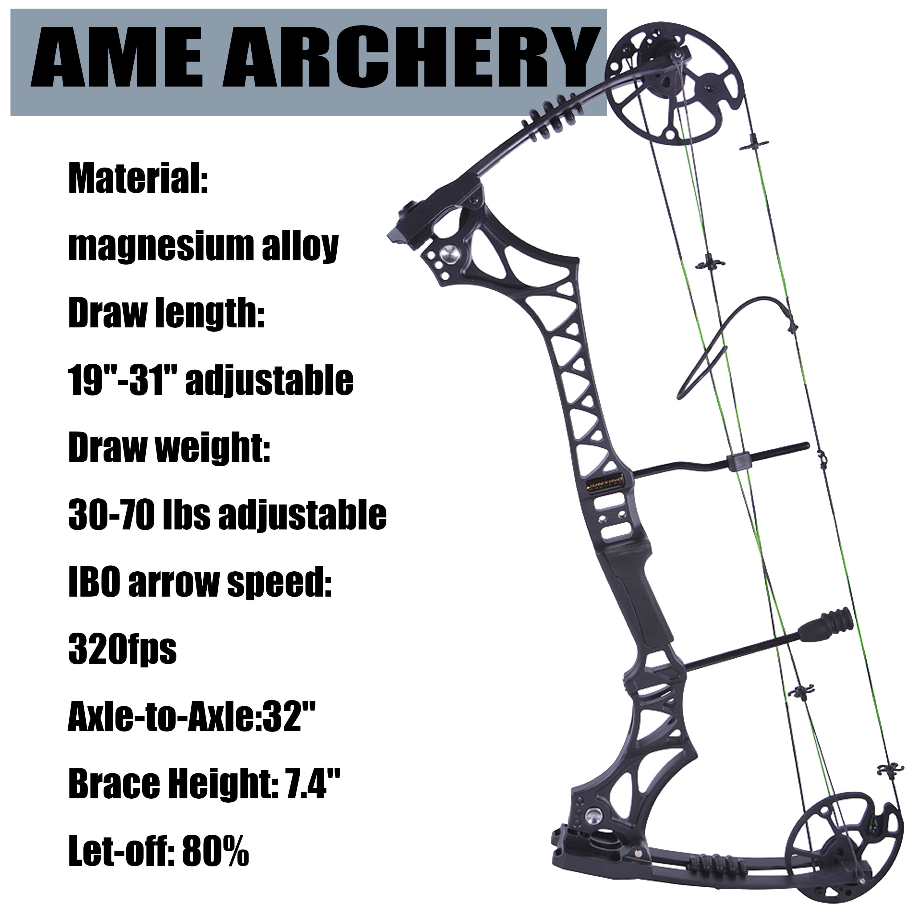• Wide adjustable draw length (19–31") and draw weight (30–70 lbs), perfect for beginners and experienced archers